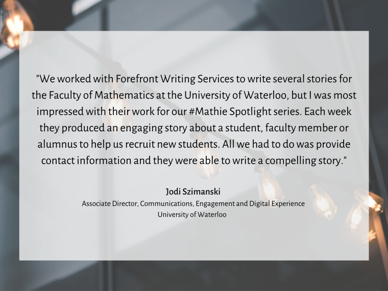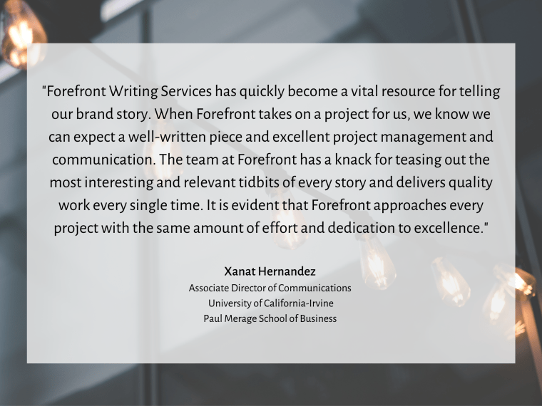 At Forefront Writing, our mission is to support your brand by telling stories of impact.